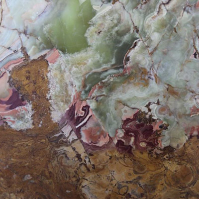 Onyx is a cryptocrystalline form of quartz. It is a very special stone in impressive colorations. In most cases it is translucent, and combined with light it is used in very special and elegant constructions and decorations.